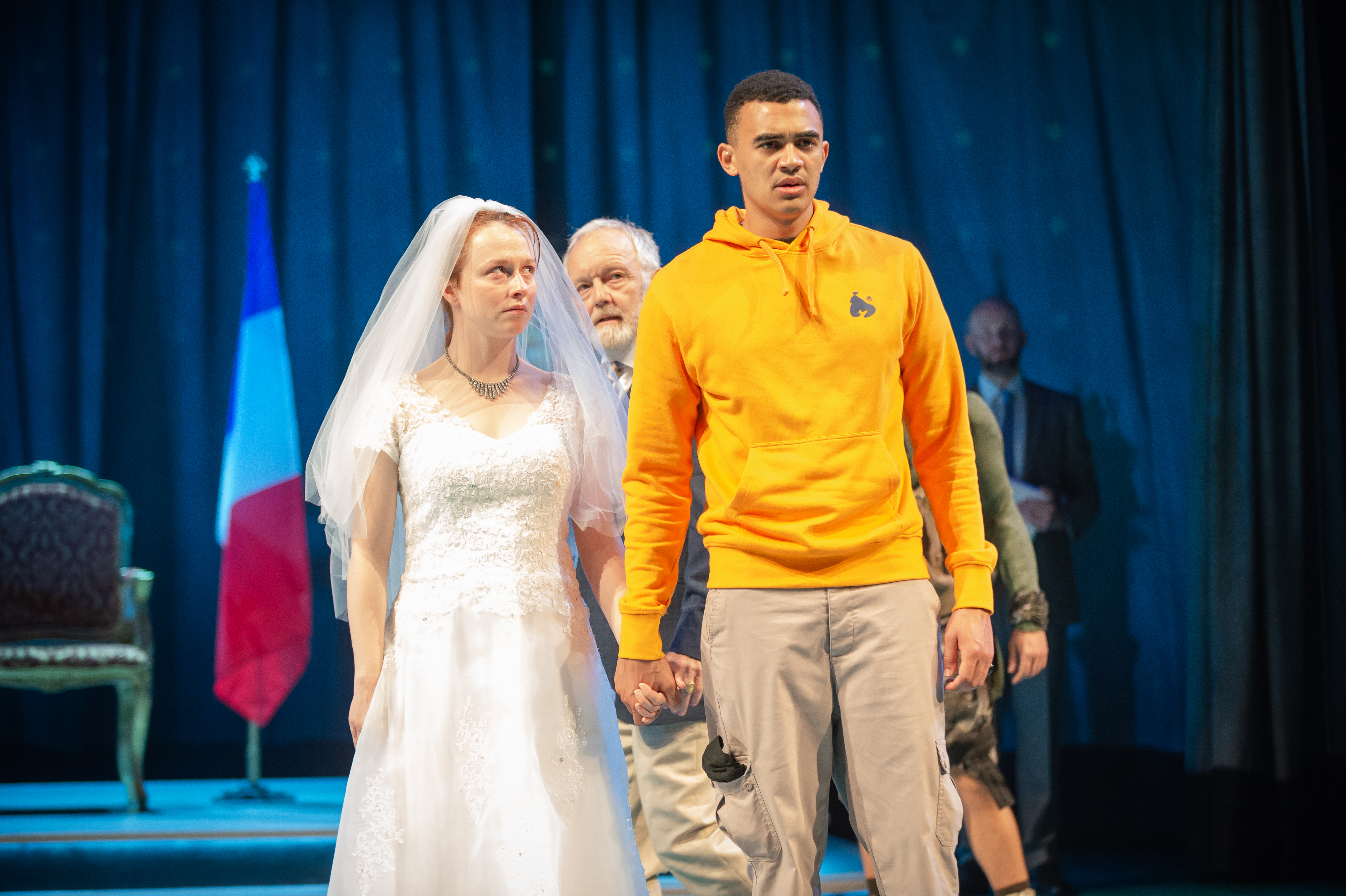 All main characters are strong actors and the play flows in such a way that the interval arrives in a flash. The soldiers (especially the two Dumains: Micah Balfour and Eloise Secker) provide subtle comedy, but director Blanche McIntyre has taken the role of Parolles (Jamie Wilkes) and made him funnier and more irritating than ever before. And it’s fabulous. Wilkes knows when to subtly break the fourth wall to enhance the comedy and his comedic timing is impeccable. His scenes with Simon Coates (Lafew) are excellent and the pair bounce beautifully off each other. There are also a few modern phrases thrown in to enhance a plot point and these help a 21st century audience to relate.