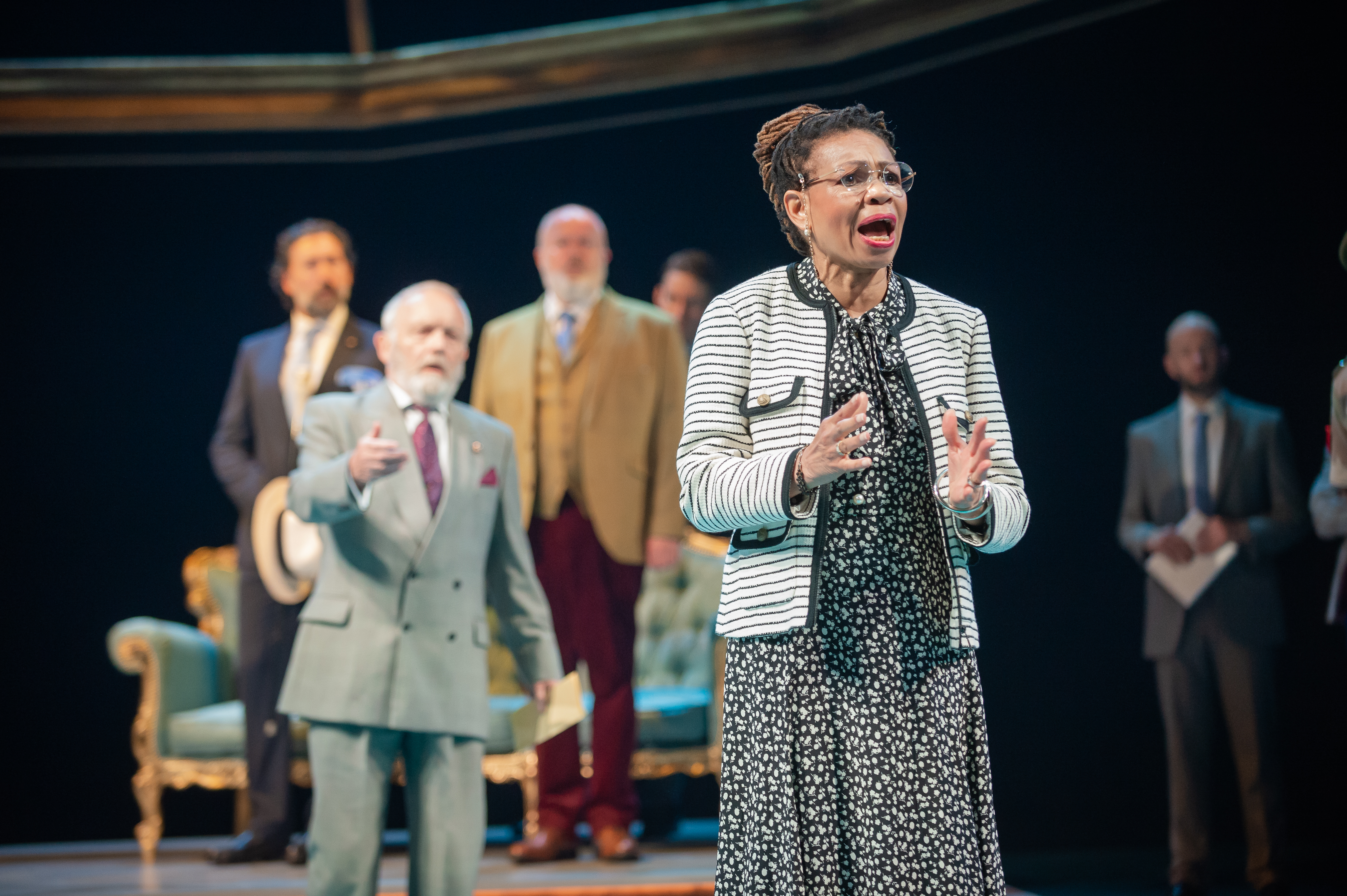Rosie Sheehy as Helena walks the line between obstreperous teenager and scorned woman, showing determination without appearing to be psychotic. It’s an excellent role, but her motives are questionable, because apart from his good looks, the object of her affection doesn’t have much with which to redeem himself. Yet Sheehy manages to make Helena more likeable than she perhaps deserves. Benjamin Westerby does what he can with Bertram, but Shakespeare has not given his character has much to work with. Claire Benedict as the Countess provides a touching performance, as she is torn between her son and the woman she sees as a daughter.